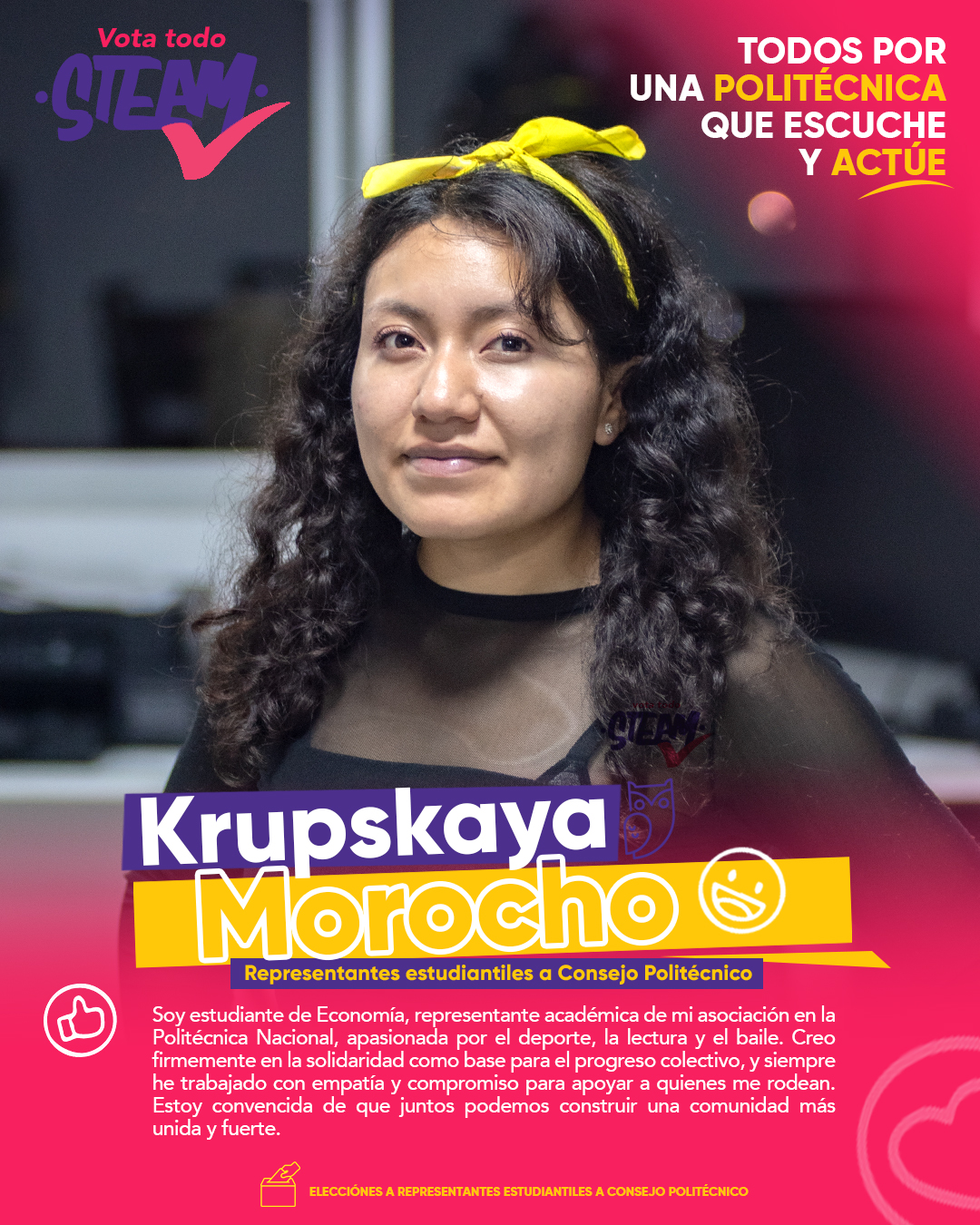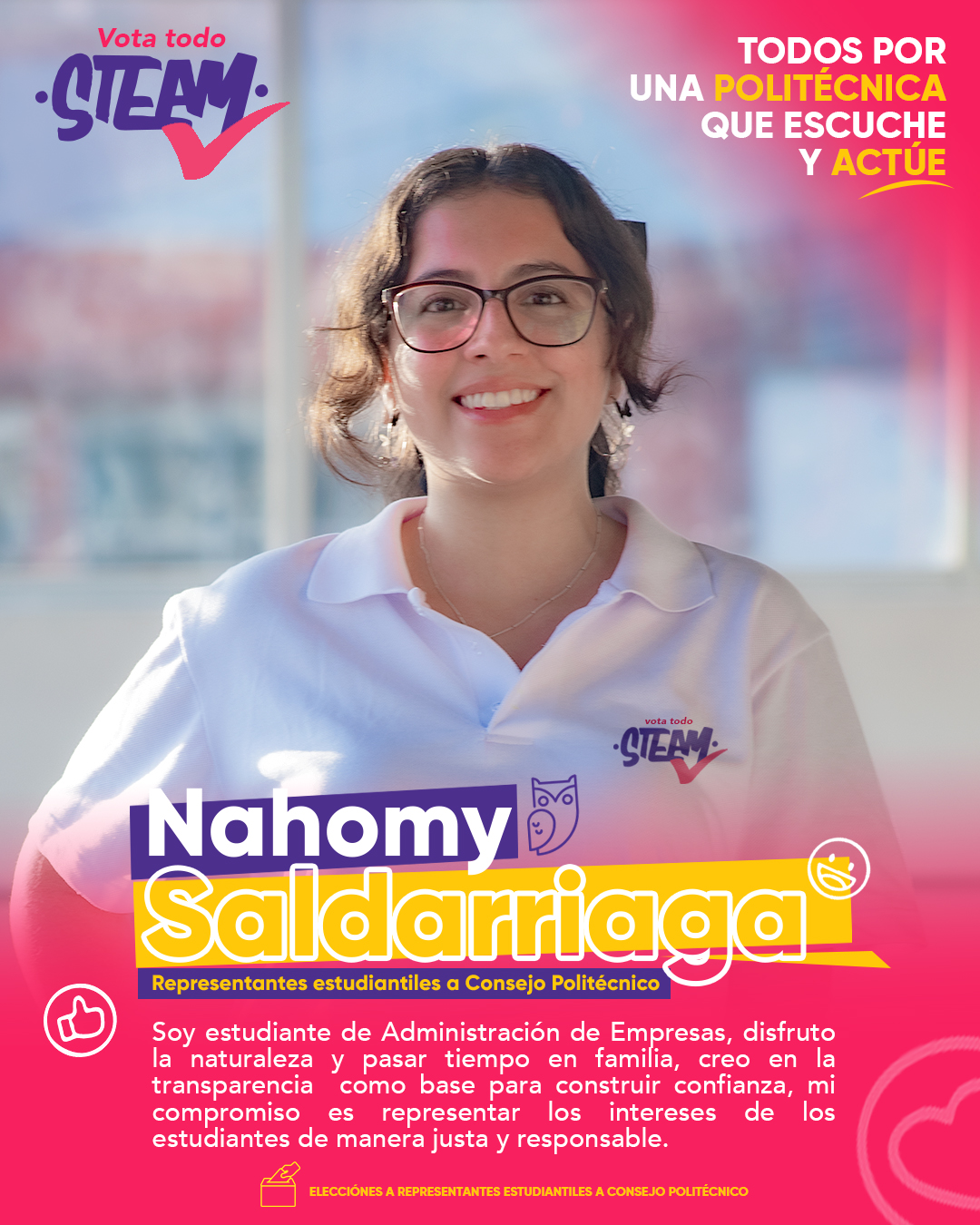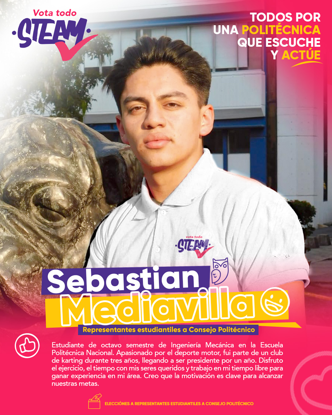 Somos STEAM, un grupo de estudiantes de distintas carreras, de pregrado, tecnologías y posgrado, que se han aliado para constituir una verdadera representación estudiantil que respalde las necesidades de los estudiantes en el Consejo Politécnico, máximo organismo de decisión de nuestra universidad.
