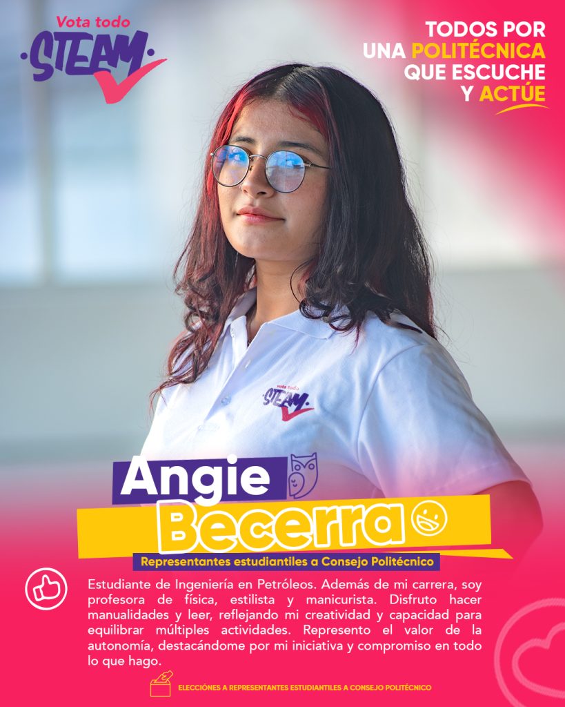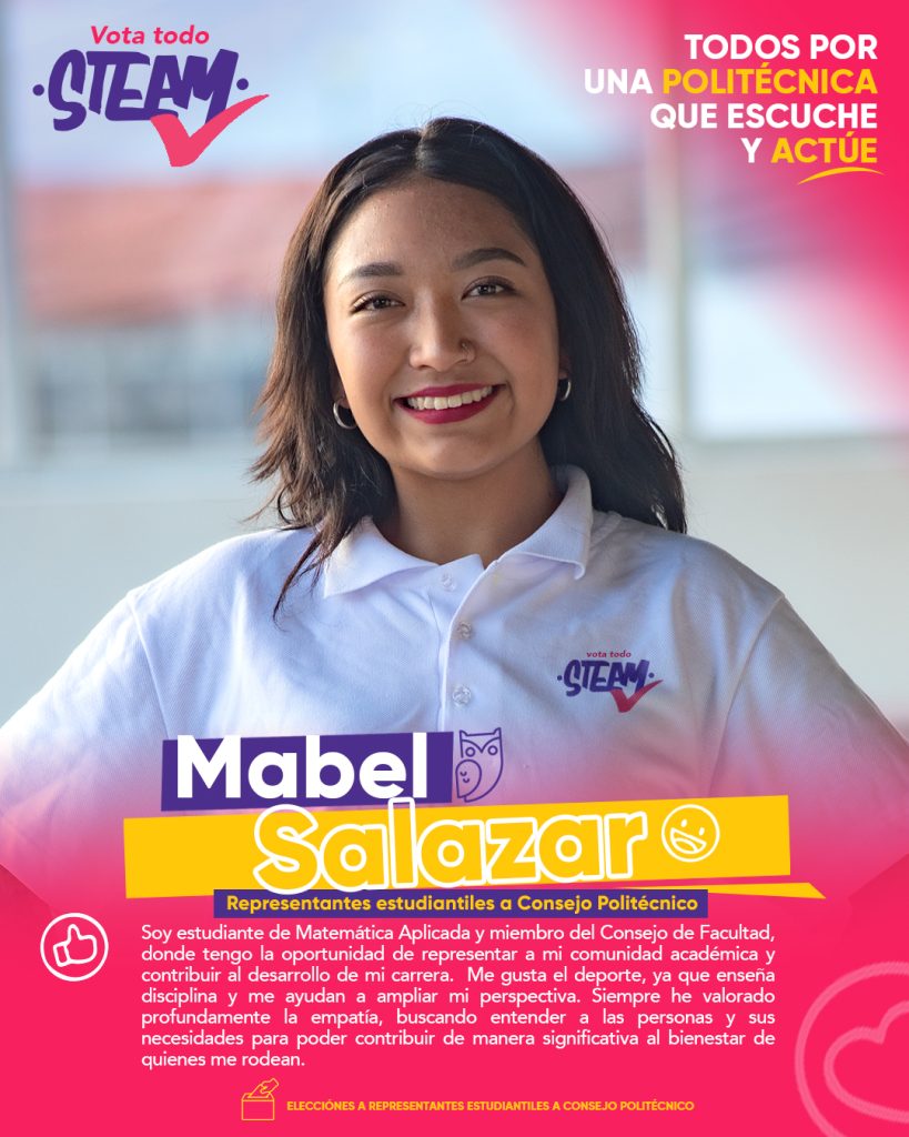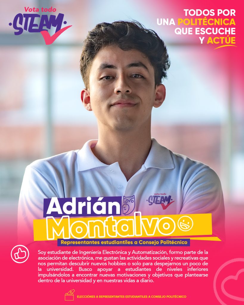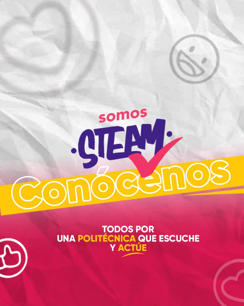 Somos STEAM, un grupo de estudiantes de distintas carreras, de pregrado, tecnologías y posgrado, que se han aliado para constituir una verdadera representación estudiantil que respalde las necesidades de los estudiantes en el Consejo Politécnico, máximo organismo de decisión de nuestra universidad.